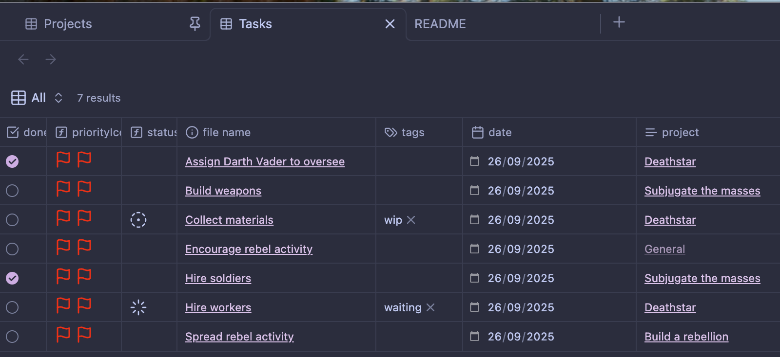 A minimal vault to manage tasks and projects in Obsidian, powered by Bases.