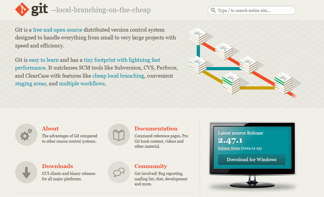 从官网(https://git-scm.com)下载安装 git:
